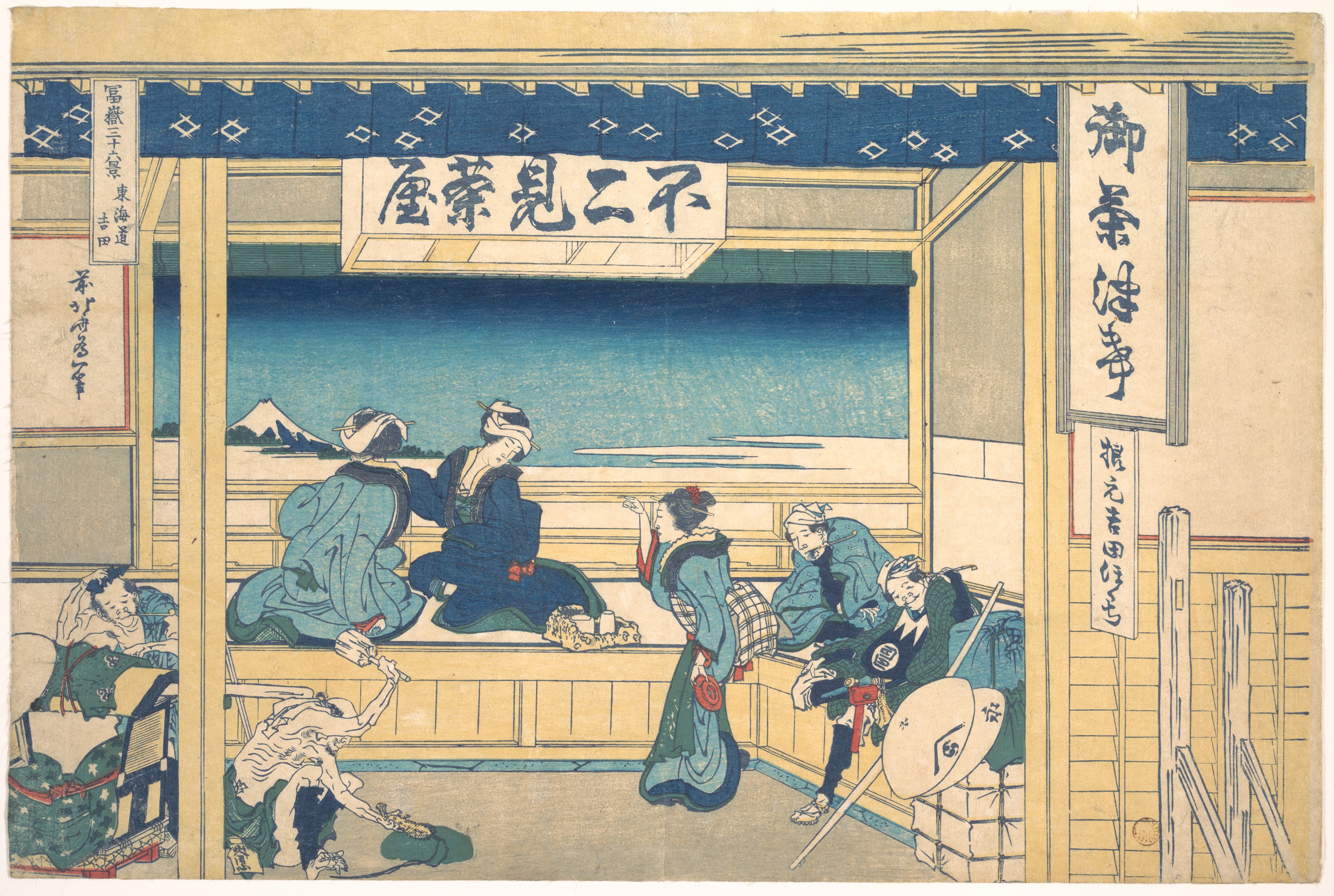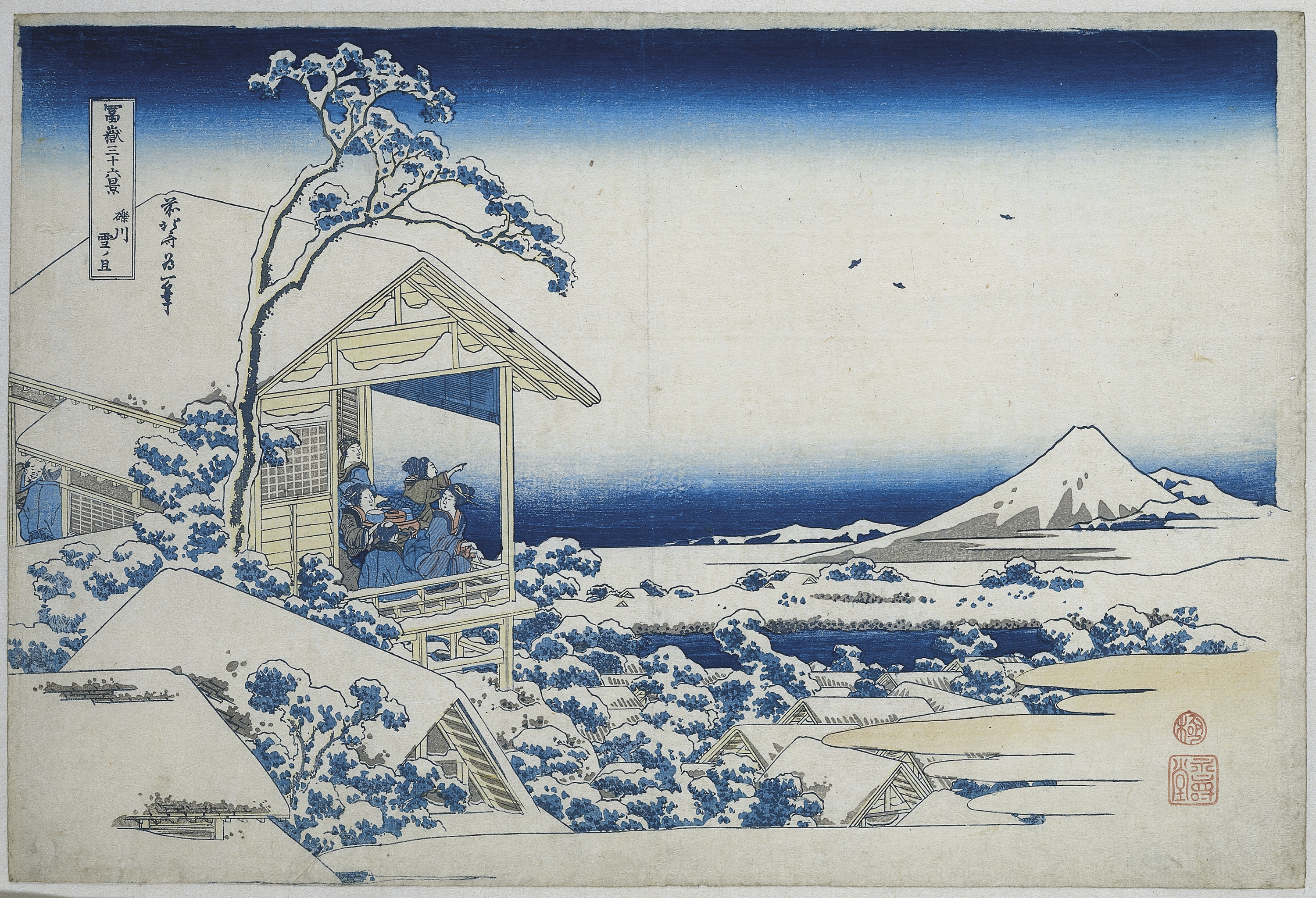 Thirty-six Views of Mount Fuji (Japanese: 富嶽三十六景, Hepburn: Fugaku Sanjūrokkei) is a series of landscape prints by the Japanese ukiyo-e artist Hokusai (1760–1849). The series depicts Mount Fuji from different locations and in various seasons and weather conditions. The immediate success of the publication led to another ten prints being added to the series. The series was produced from c. 1830 to 1832, when Hokusai was in his seventies and at the height of his career, and published by Nishimura Yohachi. Among the prints are three of Hokusai's most famous: The Great Wave off Kanagawa, Fine Wind, Clear Morning, and Thunderstorm...